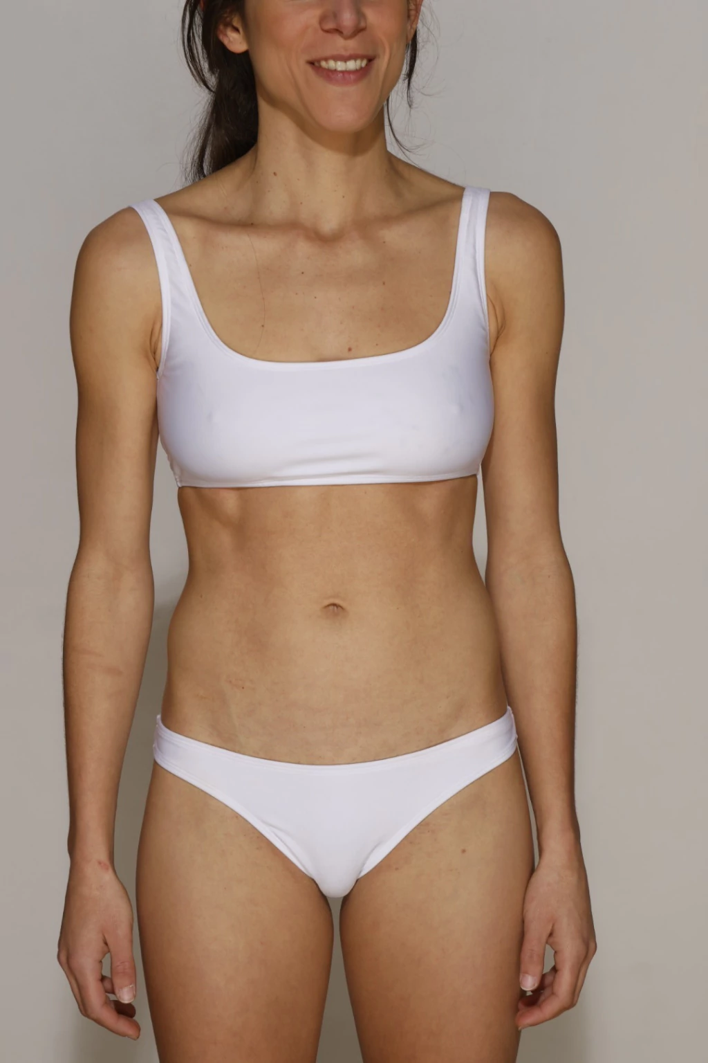 Traje de baño de dos piezas / top con escote recto / tiras anchas / bordes von vivos color hueso / vedetina